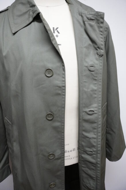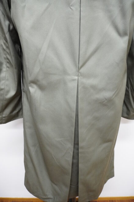 襟が大きめでダブルステッチです。比較的行ったり目、着丈長めでコットン×ポリエステル素材で水はけもよくレインコート、3シーズン利用可能な万能コートと言えばこれではないかと思います。総裏で裏はナイロン、滑りもよく着やすいです。袖丈裄で86センチです。