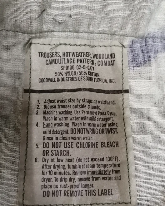 ◆👆2002年支給品。コットン50%、ナイロン50%のリップストップ。比較的WOODLANDカモとしては最終型でしょうか。