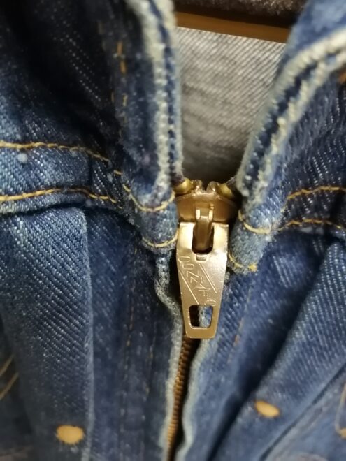 👆CONMATIC製のZIPはミリタリーに多いですがDenimにも見受けられます。Vintage確定です。なんかオーラが