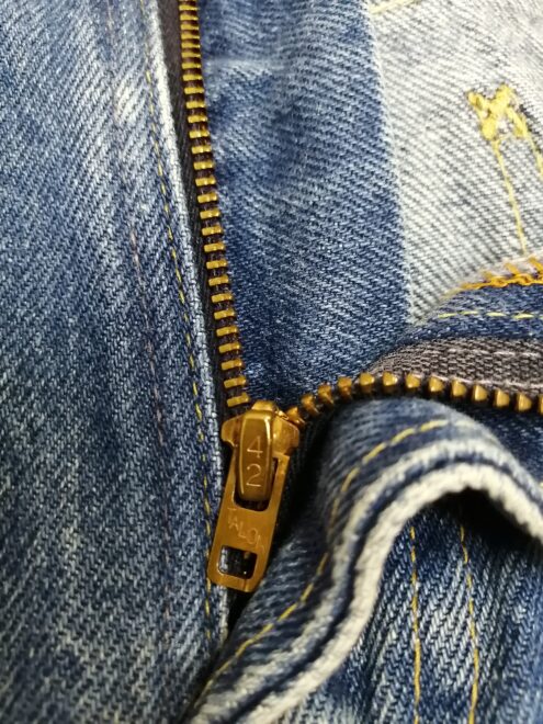 ※200は1972年に101から名称変更しており初期の200にはウェスト内側に黒タグが縫ってありますが今回のなしです。80年以降と推測されます。ミミナシ、片倒し仕様も80年製に見られる仕様です。初期はミミ付きです、