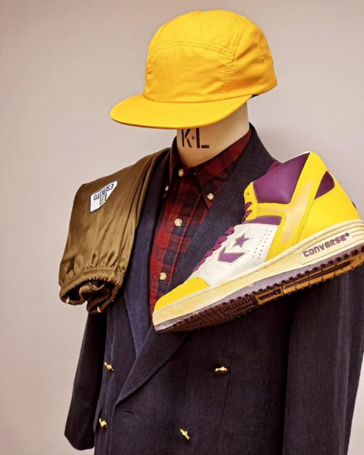 👆イエローカラーをメインにジャケットで大人観感をプラスするのが板垣洋品店流。カジュアルにドレス要素を!!