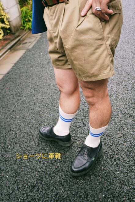 ユーロミリタリーチノショーツ、革靴とも相性良しです。