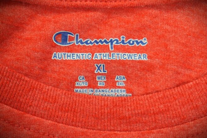 👆バングラデシュ製のチャンピオン。2000年以降のモデルかと思います。ライトウェイトでアメリカのTシャツによくある柔らかく着やすいモデルです。