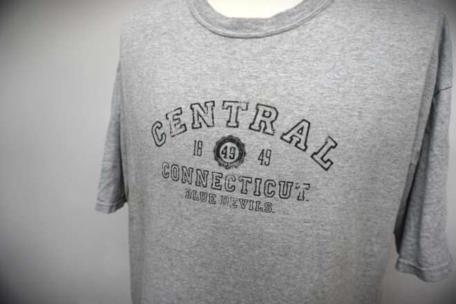 👆こちらはカレッジロゴの基本と言っても良いのでは!?これぞアメリカンなロゴ体。これだけで雰囲気最高です。Mサイズで私にはジャストサイズ。