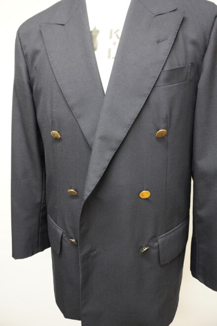 今回のダブルブレザーは起源はミリタリー。そーです。軍服です。そして海軍派生。防寒性の意味からダブル前です。