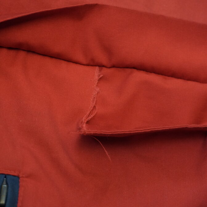 ◆70年代製のウールリッチのアメリカ製です。ポリエステル65%、コットン35%素材です。プルオーバーでバイカラーの逸品です。特に目立った汚れ、ダメージないかと思います。リブ部に毛玉感あります。70年代レトロ感満載のネタ物です。フロントポケットの裏の右側破れあります。(⑧画像目と⑨画像目)バックリブに羊ロゴがあります。