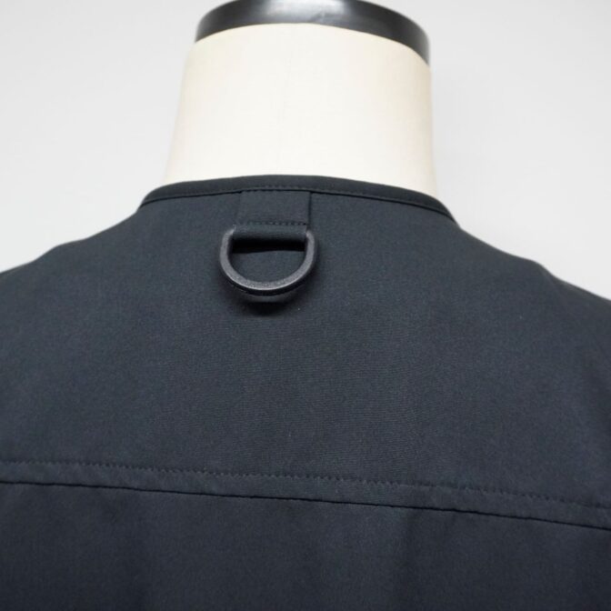 裏もメッシュ素材でオールシーズン着れるポリエステル素材。肌さわりも良くコーディネートを選びません。ゆったり目のシルエットですのでTシャツ、ロンT、スウェットの上にレイヤードしても良いかと思います。