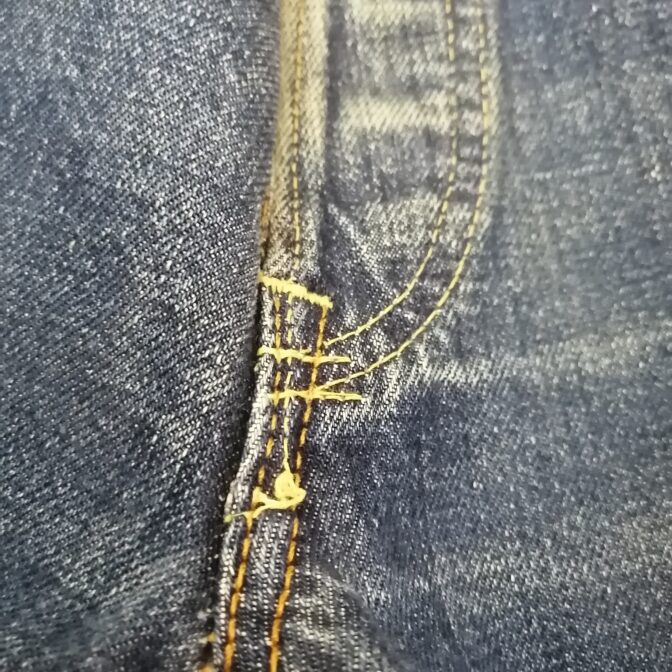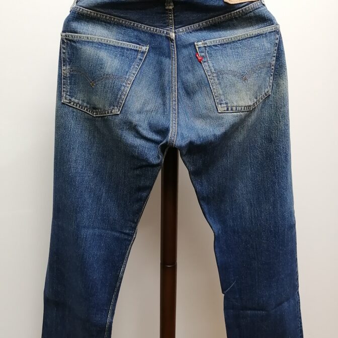 画像にて各デティール確認して頂きたいのですがフロントVステッチ、ウェスト内側シングルステッチ、フロントカンヌキ止めズレ、赤タブビックEといった501XX直後の仕様です。