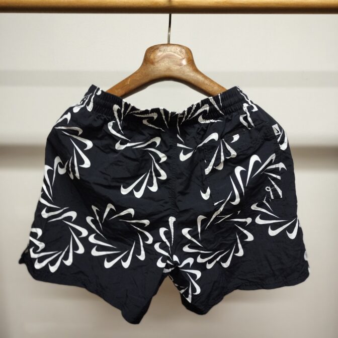 ◆2023年ナイキのスイムウェアです。ブラックベースにクラッシックロゴで人気の風車ナイキがプリントされたNナイキらしい逸品です。