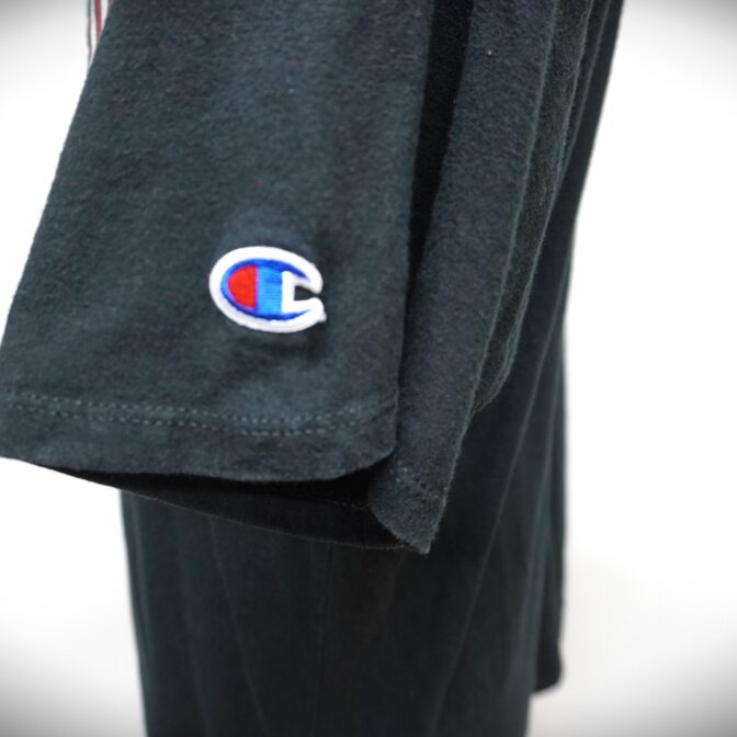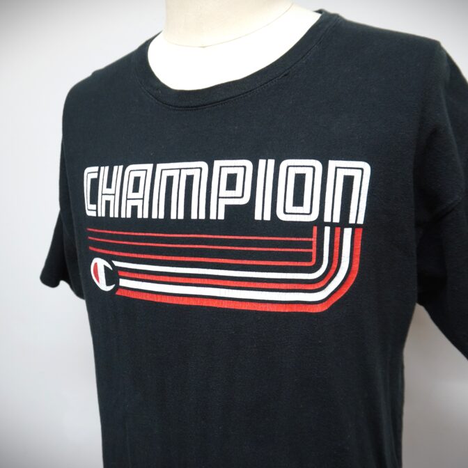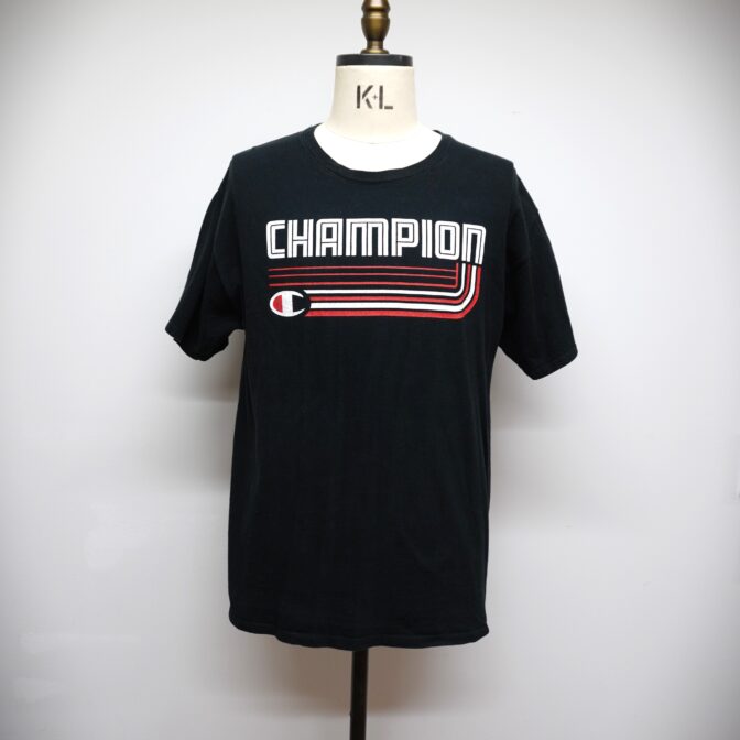 ◆チャンピオンらしいアメリカンなロゴ体のTシャツです。海外モデルです。ライトウェイトのコットン素材です。左袖に目玉ロゴが入った定番のモデルです。特に目立った汚れ、ダメージないかと思います。雰囲気抜群の逸品です。