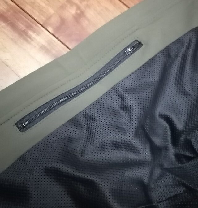 リフレクター付きで夜間でもライトで光ります。内側メッシュ仕様、右側にZIP収納あります。
