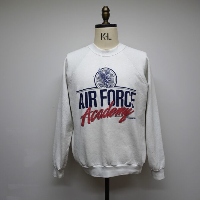 ミリタリーデザインのスウェットは名品が多く、フロントのロゴが良い物が多いです。このエアーフォースロゴも見てすぐに仕入れてしまいました。士官学校系はロゴデザインがなぜかかっこいい!!