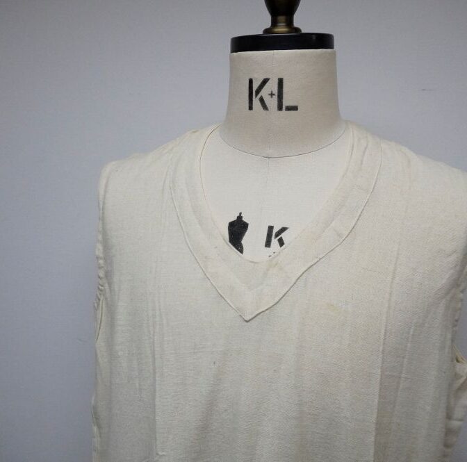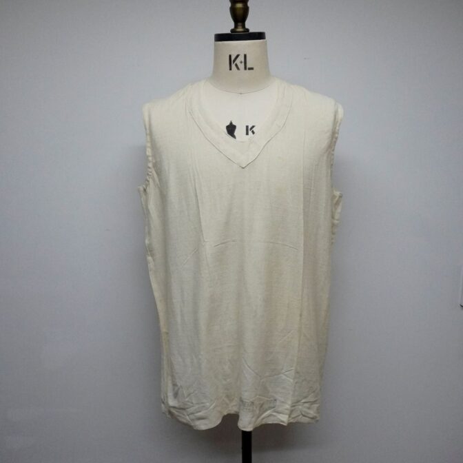 フランス軍のリネン素材のプルオーバーベストです。個体差はありますがスタンプが雰囲気最高の逸品です。1950年代に使用されていた物ですが古さを感じさせない洗練されたデザインです。フロントはVネックでシャツなどとレイヤードしても面白いかと思います。ウールとリネンの混紡素材で柔らかく肌さわりが良いです。Tシャツの上に羽織るとワンランク上のコーディネート間違いなしです。