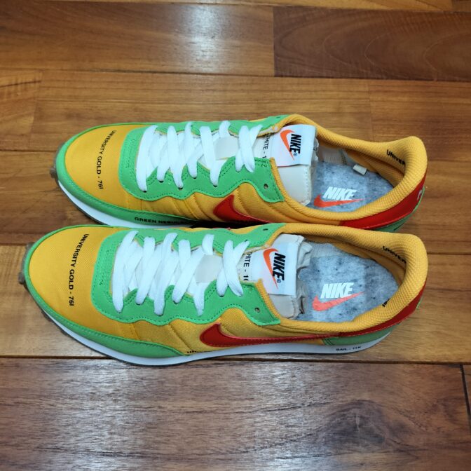 本作はワッフルパターンのガムソール、ヒールの縦ナイキロゴ、クラシック仕様のOG仕様です。各パーツにはそれぞれのカラーを印字されており、ア