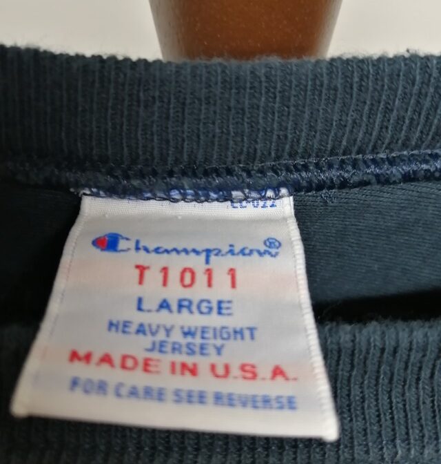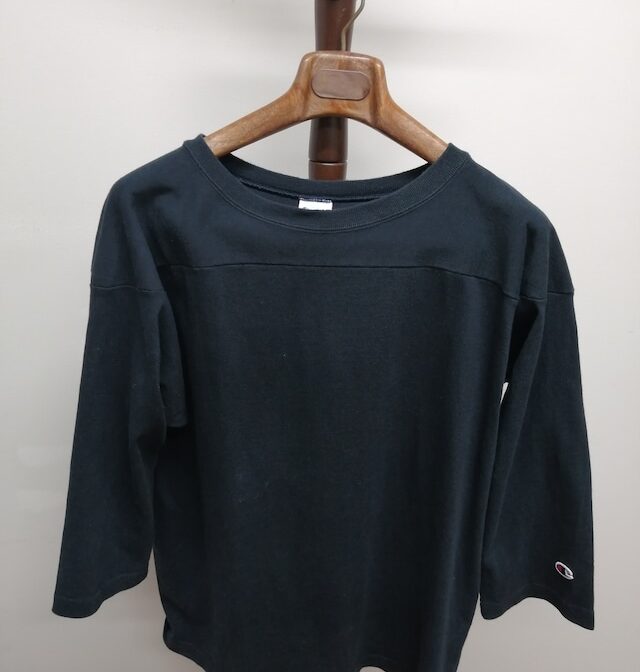 ◆Champion フットボールT USED アメリカ製 ネイビー 七分袖