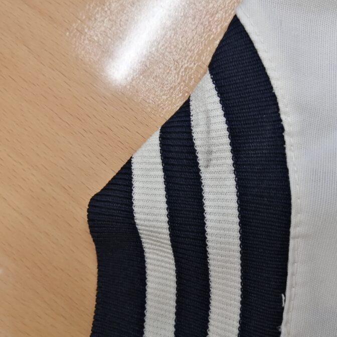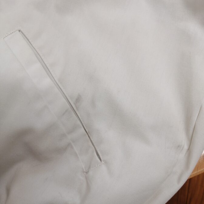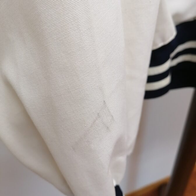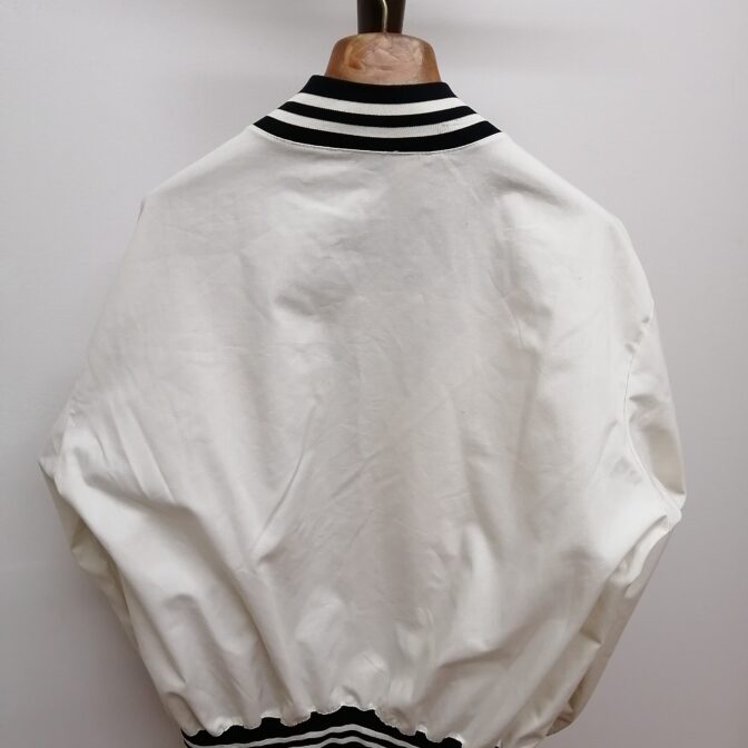 白がベースカラーです。多少ですが黒ズミがあったりしますがそこまで気にならないかと思います。(画像確認ください、)内側のタグの文字が消えており詳細は分かりかねますがこの当時のモデルはアメリカ製であるかと思います。