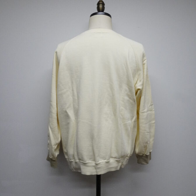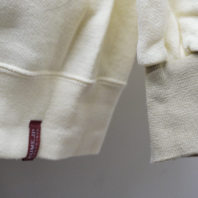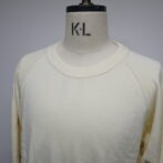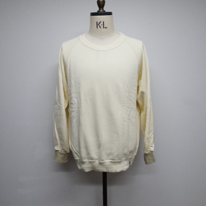 ◆東京の老舗メーカーの久米繊維とEDIFICEの別注アイテム。無地の生成りカラーの定番スウェットです。ラグランスリーブで肩周りも楽に着れます。ゆったり目のシルエットです。特に目立った汚、ダメージないかと思います。リブと本体の色が違うバイカラー仕様です。
