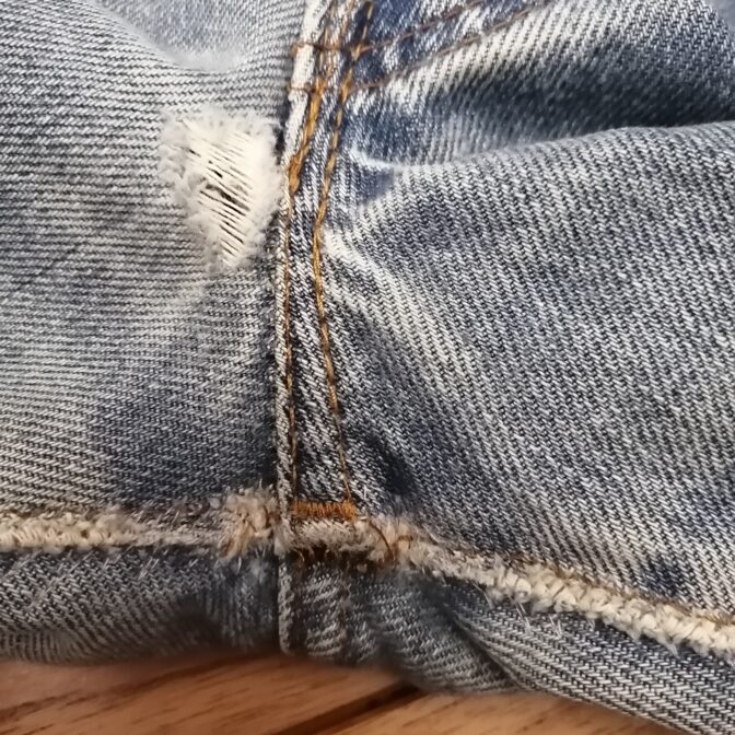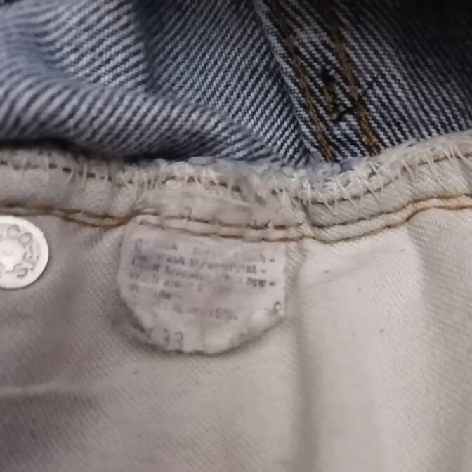 内股部にダメージあり。パッチも残っております。それ以外は目立ったダメージ、破れないかと思います。裾上げされてます。(裾シングルステッチ) 今では高額取引きされてます