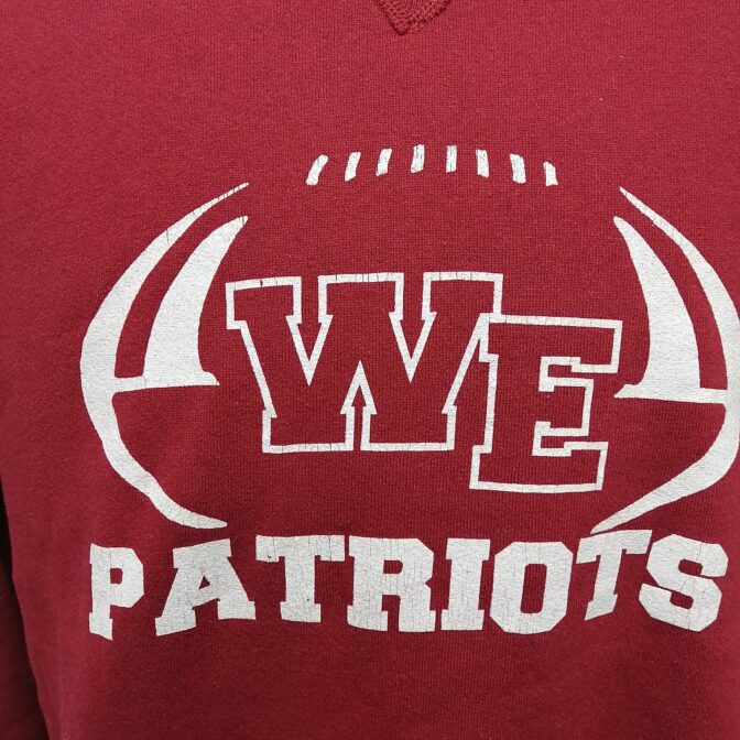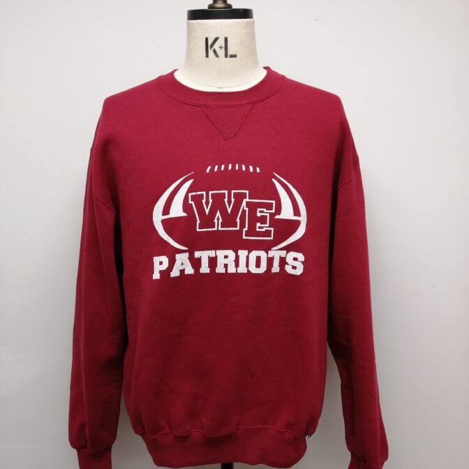 ◆90年代のラッセルアスレチックのメキシコ製です。ペイトリオッツロゴのアメリカンな逸品です。多少の毛玉感ありますが特に目立った汚れ、ダメージないかと思います。コットン50%、ポリエステル50%素材です。