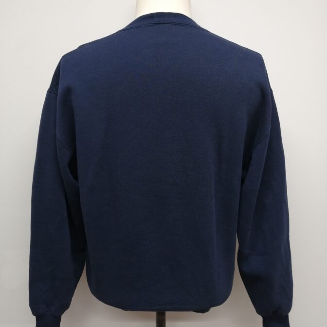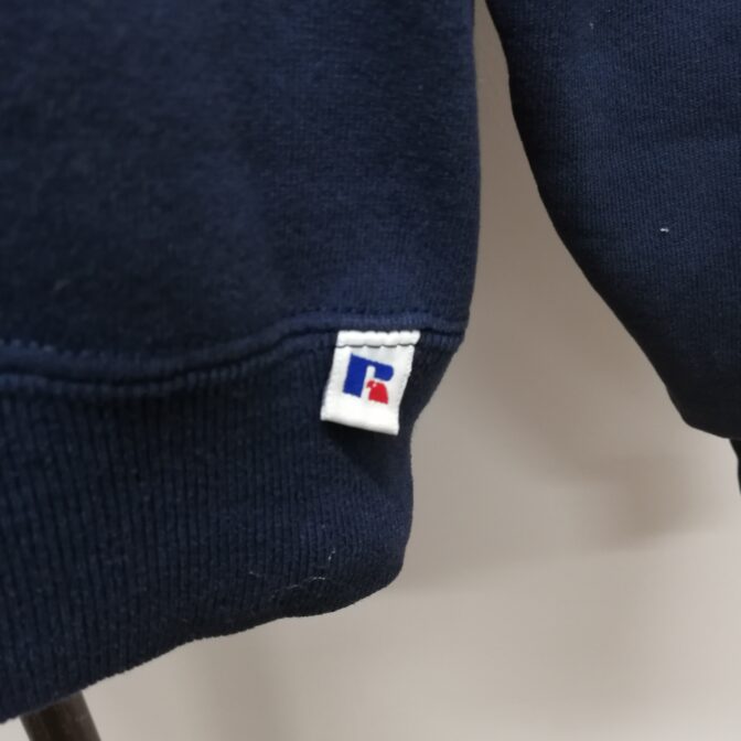 ◆90年代のラッセルアスレチックのアメリカ製です。ネイビーボディのロゴスウェットです。首周りのリブにホツレが少しあります。多少の毛玉感ありますがそれ以外目立った汚れ、ダメージはないかと思います。